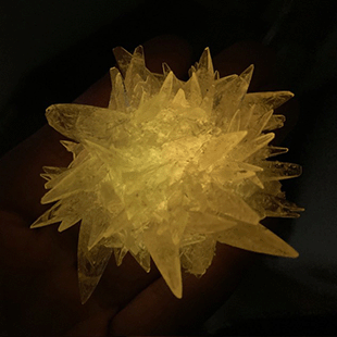[夜光結晶育成キットーCitrus Lemon] ¥2,500(税抜) 約5cm四方の檸檬色の結晶を育成し太陽光(主に紫外線)を蓄えて暗闇で黄色に発光します。 |