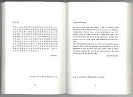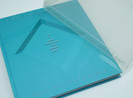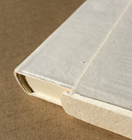 見返し及び挿入紙は、巻き見返しという技法を使い、本のノドまで自然に開くとこができます。また函は丸背の本がきれいにおさまるように、天地部分を同じような丸みでカットしてあります。全体に白くあえかな感じでありながら、しっかりとした美しい本です。